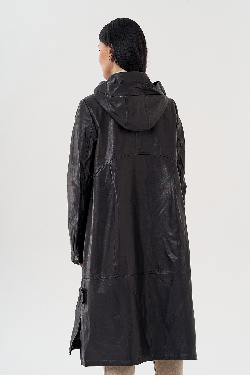 Длинный кожаный плащ с капюшоном