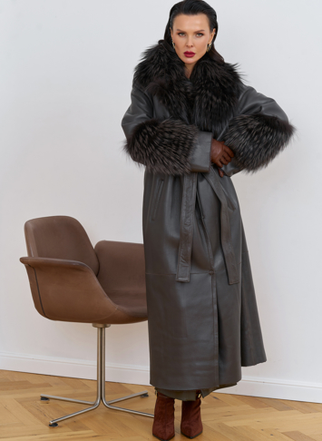 Отделка рукава - мех лисы, цвет серый